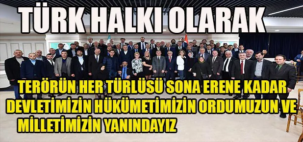Türk Halkı olarak terörün her türlüsü sona erene kadar devletimizin, hükümetimizin, ordumuzun ve milletimizin yanındayız. Bu belalar bitene kadar özveriyle çalışan Cumhurbaşkanımız Sayın Recep Tayyip Erdoğan, Başbakanımız Sayın Binali Yıldırım, Genel Kurmay Başkanımız, Komutanlarımız, Bakanlarımız, Kabine Üyeleri, Sivil Toplum Örgütleri ve her bireyin yanında olacağımızı, desteklediğimizi Türk kamuoyuna ve Birleşmiş Milletler vasıtasıyla da dünya kamuoyuna duyuruyoruz.