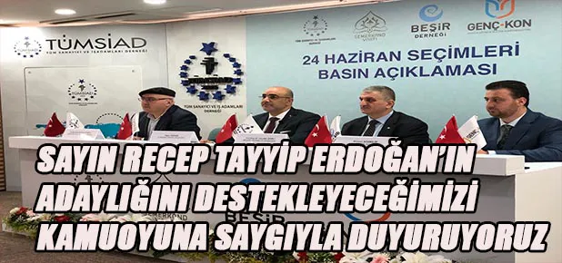 Dünyanın en büyük 18. ekonomisi ve dinamik genç nüfusuna sahip, stratejik ve jeopolitik konumu ile yükselen bir güç olan Türkiye’nin son günlerde gündeminde erken seçim var. TUMSİAD, Semerkand Vakfı, Beşir Derneği ve GENÇKON düzenledikleri ortak basın toplantısı ile hayati önem taşıyan erken seçim ile ilgili kararlarını açıkladılar. Gazze’de gerçekleştirilen elim katliamı kınayarak sözlerine başlayan TÜMSİAD Genel Başkanı Yaşar Doğan, “Cumhurbaşkanlığı ve Milletvekili seçimlerinde Cumhur ittifakını ve Cumhurbaşkanımız Sayın Recep Tayyip Erdoğan’ı destekleyeceğimizi kamuoyuna saygıyla duyuruyoruz” dedi.