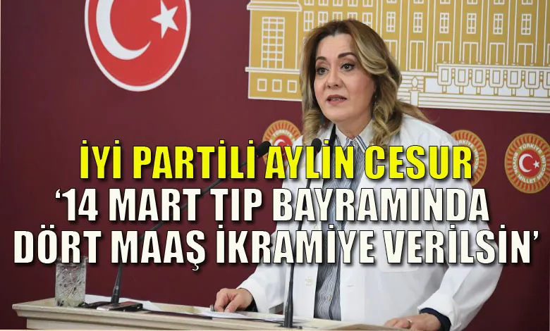İYİ Parti Isparta Milletvekili Aylin Cesur, sağlık hizmeti sınıfında çalışan tüm sağlık personeline her yıl 14 Mart Tıp Bayramı’nda dört maaş tutarında ikramiye verilmesi için Meclis’e kanun teklifi sunduklarını söyledi.