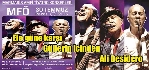 Türk pop ve rock müziğinin efsane grubu MFÖ, Kerki Production ve Solfej Organizasyon’un düzenlediği yaz konserleri kapsamında 30 Temmuz’da Marmaris’te sahne alacak. Son olarak çıkardıkları yeni albümleriyle beğeni toplayan sevilen grup, Marmaris’te vereceği konserle hayranlarına yine unutulmaz bir gece yaşatacak.