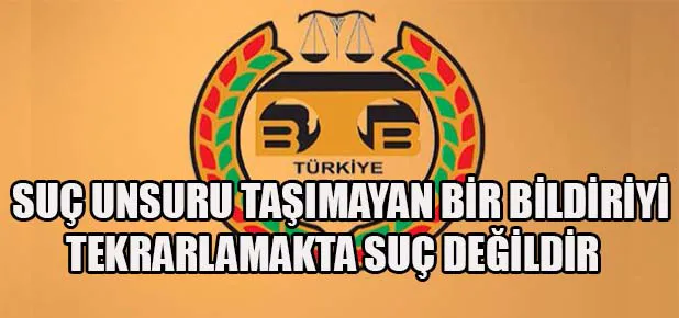 Öte yandan, bazı avukatların, Türk Tabipler Birliği'nin bize göre içeriğinde suç unsuru bulunmayan söz konusu bildiriyi okudukları gerekçesiyle soruşturulduklarına dair bilgiler Birliğimize ulaşmıştır. Suç unsuru taşımayan bir bildiriyi tekrarlamak da elbette suç değildir. Anayasanın koruması altında olan bir düşünce açıklamasıdır.