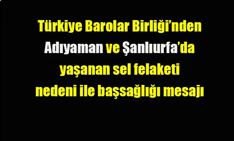 Türkiye Barolar Birliği Şanlıurfa ve Adıyaman’da meydana gelen sel felaketinden dolayı başsağlığı mesajı yayımladı
