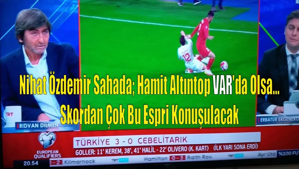 Pozisyonu devre arasında yorumlayan Rıdvan Dilmen bir kaç kez izlediği görüntülerden sonra espri ile karışık bir ifade kullandı. Dilmen, 'Bana kırmızı kart gibi değil gibi geldi ama sonra bir kaç kez dikkatlice baktım görülüyor ki şiddetli bir darbe var olduğu görülüyor. Nihat Özdemir sahada Hamit Altıntop VAR'da olsa vermezdi dedim, ama hareket kırmızıydı' ifadelerini kulandı.