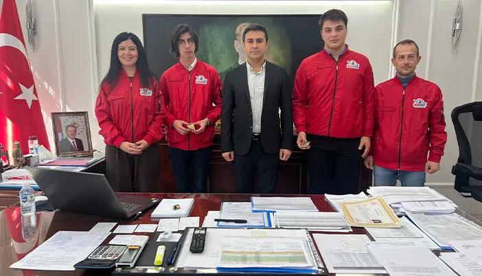 Torulkart ekibinde yer alan öğrenciler Artan Toprak Ergin ve Tarık Aslan ile danışman öğretmenler Tuğba Tat ve Mevlüt Serdar Aksoy, Okul Müdürü Hasan Efe ile birlikte Kaymakam Koray Çelik tarafından ödüllendirildi.