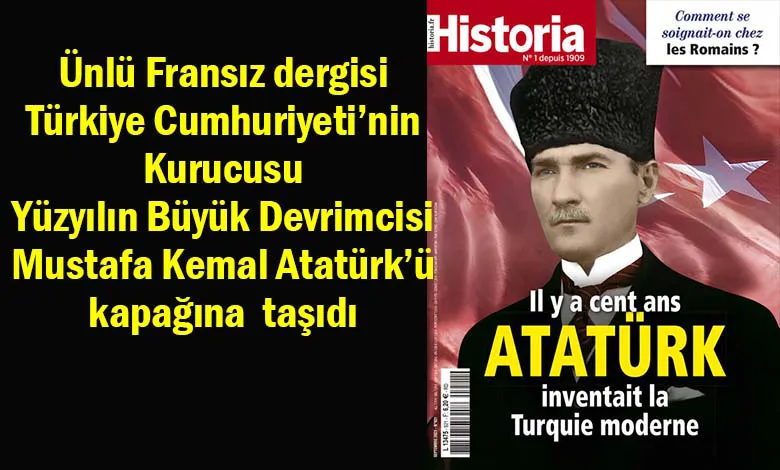 Ünlü Fransız tarih dergisi Historia, Eylül 2023 tarihli 921 sayılı kapağında Türkiye Cumhuriyetinin kurucusu ve kurtarıcısı Gazi Mustafa Kemal Atatürk'e yer verdi. Derginin bu ayki sayısının kapağında "Atatürk Yüz Yıl Önce Modern Türkiye'yi İnşa Etti" ifadesi yer aldı. Cumhuriyetin 100. yılına ithafen hazırlanan bu sayı, Türk dünyası tarafından büyük bir beğeniyle karşılandı.