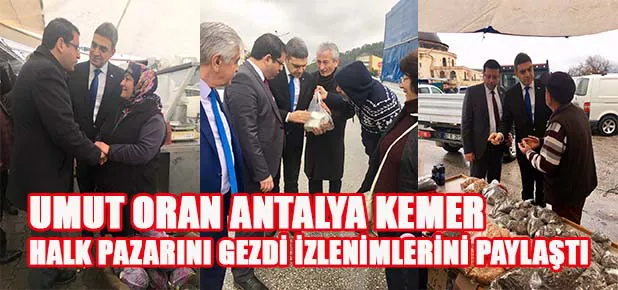 Sosyal medya hesabı twıtter üzerinden Antalya - Kemer halk pazarından izlenimlerini paylaşan Oran, ‘Yağmurlu bir hava da, Kemer’de pazar da vatandaşlarımızı ve esnafımızı dinledik. Ankara’daki beyler duysun 80 TL’ye 3 küçük poşetle pazar yapıyor vatandaş; Seracılığın başkenti Antalya’da bile 6 – 7 TL’den ucuz sebze yok. Çiftçiye, üreticiye tam destek lazım yok başka çözüm, CHP’ dedi.