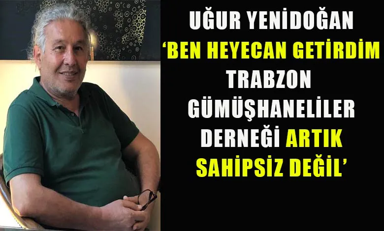 Trabzon Gümüşhaneliler Derneğinin 19 Temmuz Salı günü yapılan olağan kongresinde çok az farkla başkanlık yarışını kaybeden Uğur Yenidoğan Gündoğumu Gazetesine konuştu. Yenidoğan, ‘’Seçimi 59’a karşı 62 oy ile kaybettik. Ancak derneği kimse almıyor söylemi artık geçersiz duruma geldi. Ben derneğe heyecan getirdim. Yeni yönetim bundan faydalanmalıdır. Katılan tüm üyelere ve beni destekleyen arkadaşlarıma teşekkür ederim. Yeni yönetim kuruluna da başarılar diliyorum.’’ Dedi.