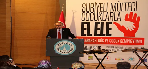 Sempozyumun açılış konuşmasını yapan Üsküdar Üniversitesi Rektörü Prof.Dr. Nevzat Tarhan, Suriyeli Çocuklarla El Ele Projesi’nin birçok çocuğun hayatına dokunduğunu belirterek son yıllarda ister sığınmacı ister mülteci olarak tanımlansın büyük bir sosyal travma yaşandığını belirterek “Bir afettir bu. Psikiyatriyle ilgili acil birimlerde afet ikiye ayrılır. Biri doğal afetler, diğeri insan eliyle oluşturulan afetler. Suriye, insan eliyle oluşturulan bir afet. Son rakamlara göre 600 bin kişinin öldüğü söyleniyor. Bu sayıdan daha fazla da mülteci var. Büyük çoğunluğu Türkiye olmak üzere savrulmuş bir toplum, bu sosyal tsunamidir. Bunun kurbanları ise en zayıflar hastalar ve yaşlılar oluyor” dedi.
