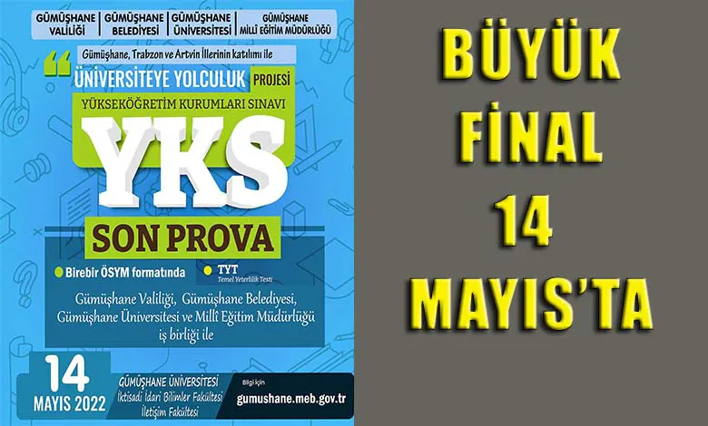 Üniversiteye yolculuk yolunda büyük prova 14 Mayıs’ta. Gümüşhane, Trabzon ve Artvin illerinin katılımı ile YKS Son Prova Sınavı "Üniversiteye Yolculuk Projesi" kapsamında 14 Mayıs 2021 Cumartesi günü yapılacak.