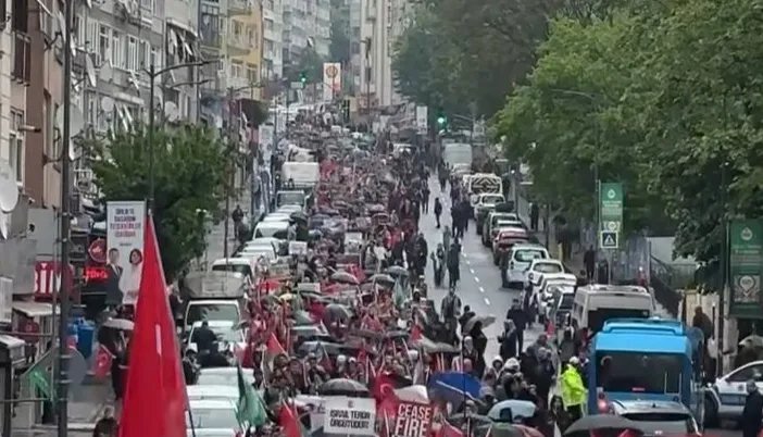 İstanbul, Üsküdar’da binlerce vatandaş, Gazze’deki ablukanın kaldırılması ve İsrail’in işgalci politikalarının son bulması için yürüyüş düzenledi.