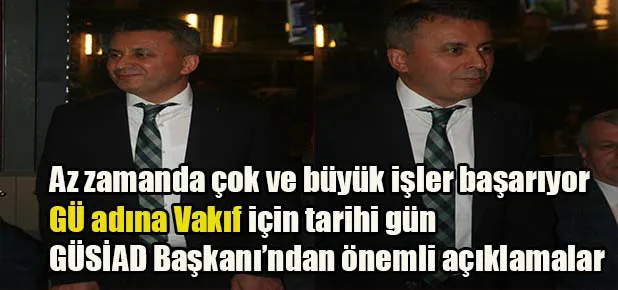 Bu sebeple GÜ bünyesinde bir vakıf kurulması projesi oluştu sayın rektörüm dediler ki; İstanbul'da GÜSİAD müteşekkilinden bir heyet oluşturabilirsek biz vakfın amaçlarını anlatalım hemde bu vakıf içerisinde gerek mütevellidi olacak gerek başka destek sağlayacak iş dünyasından hemşerilerimize bu projeyi anlatalım.