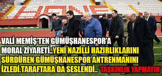 Futbolda yenmenin de yenilmenin de olduğunu hatırlatan Vali Okay Memiş, oyunculardan iyi mücadele etmelerini özellikle isterken, profesyonelliğin yanında biraz da amatör ruha ihtiyaç olduğuna değindi. Geçtiğimiz sezon olaylı Ankaragücü maçından sonra yaşananları anlatarak yöneticilerin, oyuncuların, teknik heyetin ve taraftarların özellikle hakemlere karşı biraz daha sağduyulu olmasını isteyen, saha olaylarına karşı gerekli tüm tedbirlerin artırılacağına vurgu yapan Vali Memiş, “Tribün olaylarına karşı her türlü tedbiri alacağız. Devleti aciz göstermeyeceğiz. Hiçbir seyirci sahamızı kapatmakla bizi karşı karşıya bırakmasın. Futbolcularımız ve teknik heyetimizde buna dâhil. Sizlerden rica ediyorum, soğukkanlı olun. Çünkü bunun faturasını şehir ödüyor. Biz her türlü tedbirimizi alacağız. Gümüşhane’de oynanan her maç artık final atmosferinde geçecek. Biz bunun farkındayız. Ama sizlere inanıyor ve güveniyoruz. Yenmek için elimizden geleni yapacağız. Sizlere inanıyor ve güveniyoruz. Bir isteğiniz olursa her zaman yanınızda olduğumuzu özellikle belirtmek istiyorum” şeklinde konuştu.