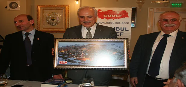 Gümüşhane Dernekler Federasyonu Başkanı Tahsin Söğüt, İstanbul Eski Valisi Hüseyin Avni Mutlu’ya Gümüşhane temalı bir portre hediye etti.