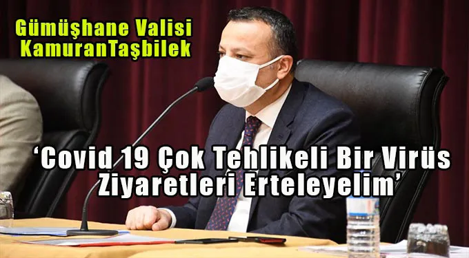 Gümüşhane Valisi Kamuran Taşbilek, muhtarlara seslenerek ‘’2020’nin en önemli meselesi Yeni Koronavirüs (COVID-19) meselesi. Çok tehlikeli bir virüs. Sizlerden istirhamım köylerimizde vatandaşlarımızla bire bir irtibata geçin, insanlarımızın birbirlerine gidip gelmelerini askıya alalım.’ Dedi