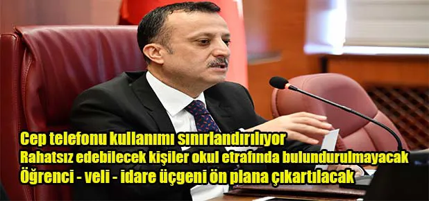 Vali Taşbilek toplantıda ayrıca geçtiğimiz yıl uygulamaya konulan cep telefonu kullanılmasının sınırlandırılması uygulamasının aynı şekilde devam edeceğini, okulla ilgisi olmayan, çocuklarımızı rahatsız edebilecek kişilerin okulların etrafında bulunmasını yasaklayan bir çalışmayı tamamladıklarını, başta sigara olmak üzere bağımlılık oluşturan maddelerin okul çevrelerindeki işletmelerde satılma ihtimaline yönelik çalışmaların da titizlikle takip edileceğini sözlerine ekledi.