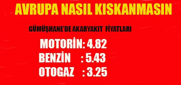 Zam denilince de akla elbette akaryakıt geliyor. Milyonlarca araç sürücüsü bu habere sevinmeyecek ama anlaşılan o ki akaryakıttaki yüksek ateş hakikaten cebi değil elbiseyi yakacak gibi görünüyor. An itibarıyla Gümüşhane’den elde ettiğimiz bilgilere göre akaryakıt fiyortları da şöyle oluştu: Motorin 4.82, Benzin 5.43, Otogaz 3.25.