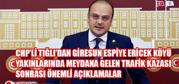 CHP Giresun Milletvekili Necati Tığlı, Giresun’un Espiye İlçesi Ericek Köyü yakınlarında meydana gelen trafik kazası sonrası açıklamalarda bulundu.