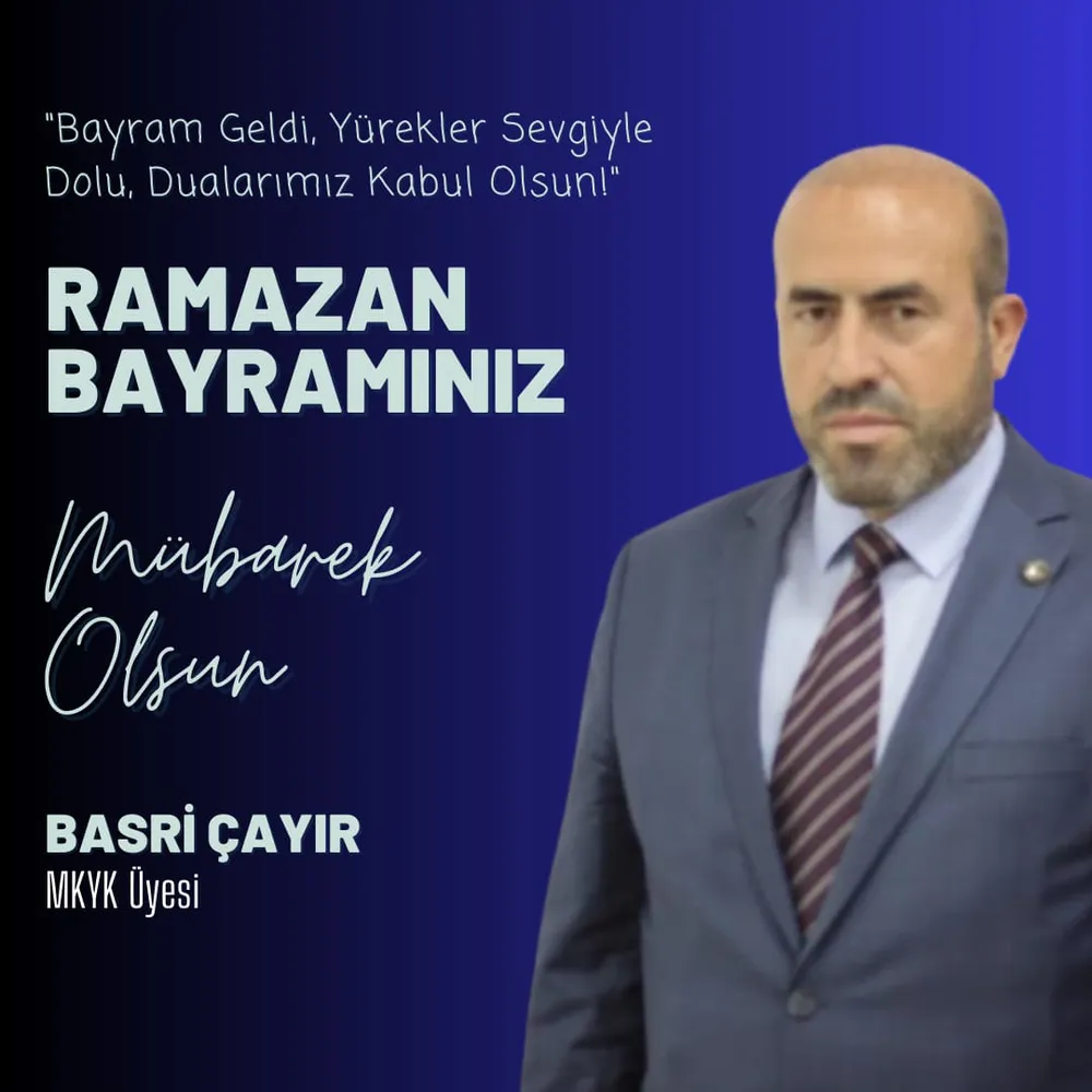 'Bereketin, huzurun ve mutluluğun daim olduğu nice bayramlara... Ramazan Bayramınız mübarek olsun! Basri ÇAYIR Yeniden Refah Partisi MKYK Üyesi