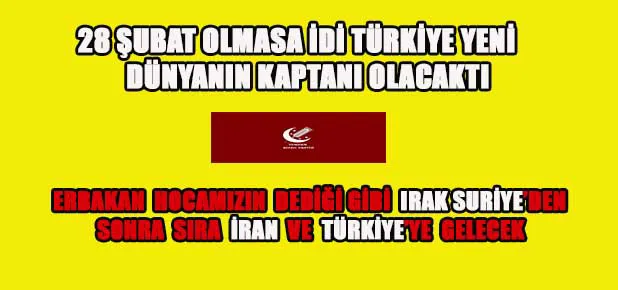 28 Şubat olmasa idi, Türkiye bu gün yenidünyanın kaptanı olacak idi.