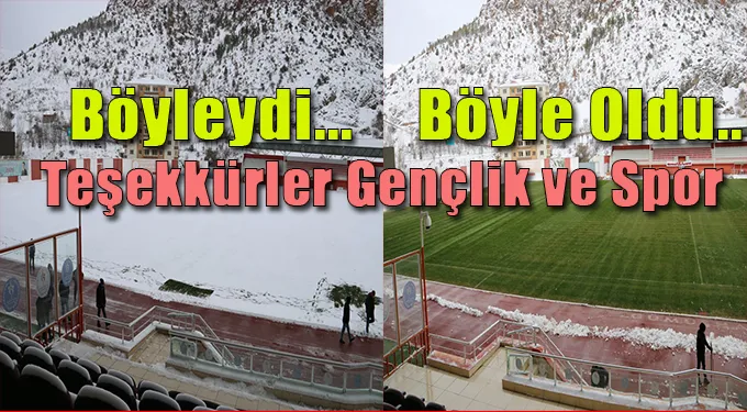 Yoğun kar yağışı sonrası zemin karla kaplanırken İl Gençlik ve Spor Müdürlüğü çalışanlarım gün boyu yaptıkları temizlik çalışmalarının ardından zemin eski haline getirildi.