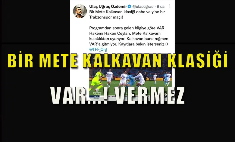 Programdan sonra gelen bilgiye göre VAR Hakemi Hakan Ceylan, Mete Kalkavan’ı kulaklıktan uyarıyor. Kalkavan buna rağmen VAR’a gitmiyor. Kayıtlara bakın isterseniz :) @TFF_Org’