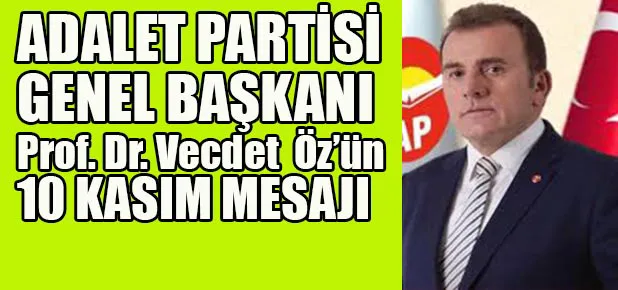Adalet Partisi Genel Başkanı Prof. Dr. Vecdet Öz'ün 10 Kasım Mesajı