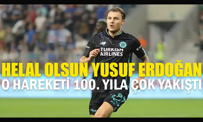 Karşılaşmanın sonunda Adana Demirsporlu Futbolcu Yusuf Erdoğan elinde dev Atatürk Bayrağı ile sahanın ortasında tur attı