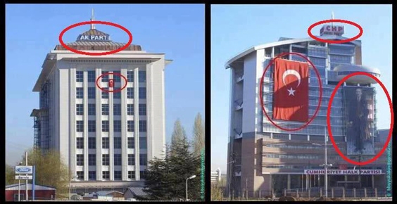 AK Parti ve CHP Genel Merkezlerinde 29 Ekim öncesi yayınlanan bayrak ve Atatürk resimleri günün konusu oldu.