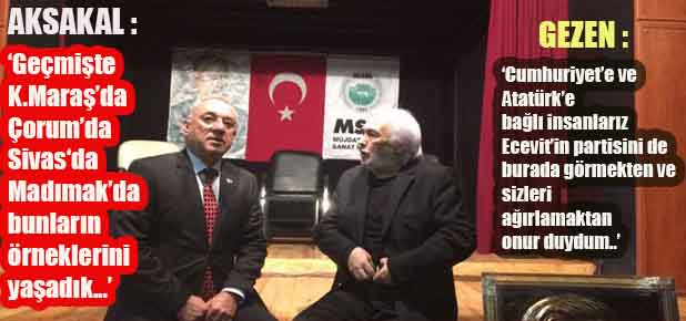 MSM kurucusu ve sanatçı Müjdat Gezen’de konuşmasında ziyaretten duyduğu memnuniyeti dile getirdikten sonra, “bu saldırının bilerek organize edildiğini düşünüyorum. Böyle bir olaydan sonra failin mahkemece serbest bırakılması bu görüşümüzü doğruluyor. Bu şahsın dün gece saatlerinde yeniden gözaltına alındığını öğrendik. Bizler Cumhuriyete ve Atatürk ilkelerine bağlı insanlarız, Ecevit’in partisini de burada görmekten ve sizleri ağırlamaktan onur duydum.” dedi.
