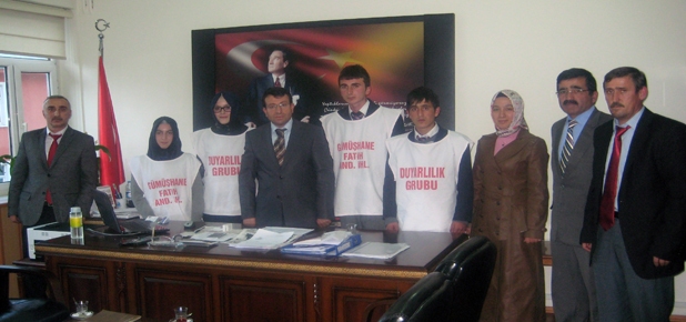 Fatih Anadolu İmam Hatip Lisesi’nde Okul Aile Birliği ve öğretmenleri tarafından olumlu bir okul iklimi oluşturmak ve Gümüşhane’de toplumsal duyarlılığın artırılması hususunda kamuoyu oluşturmak amacıyla oluşturulan “Duyarlılık Grubu” ziyaretleri devam ediyor.