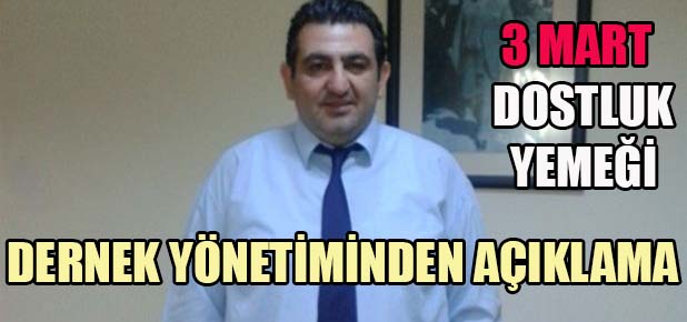 ‘Sevgili Hemşehrilerimiz; 3 Mart 2018 Cumartesi akşamı yapacağımız Kelkitliler Derneği Geleneksel Dostluk Yemeği organizasyonumuzun biletleri 8 Ocak Pazartesi günü satışa çıkarılacaktır. Biletler yönetim kurulu üyelerimizden, hafta sonları dernek lokalimizden ve Türkiye İş Bankası'nda bulunan dernek hesabına ödeme yaparak temin edilebilecektir. Ayrıca organizasyon akşamı bilet mevcut olması durumunda, salon girişindeki görevliden de nakit ya da kredi kartı ödemesi yaparak temin edilecektir. Büyük organizasyonumuz öncesi değerli Kelkitli hemşerilerimizle birlikte olmanın bir kez daha haklı gururunu yaşayacağız. Birlik ve beraberliğimizin daim olmasını temenni ederek, hemşerilerimizi yanımızda görmekten duyacağımız memnuniyeti de ayrıca paylaşmak istiyorum’