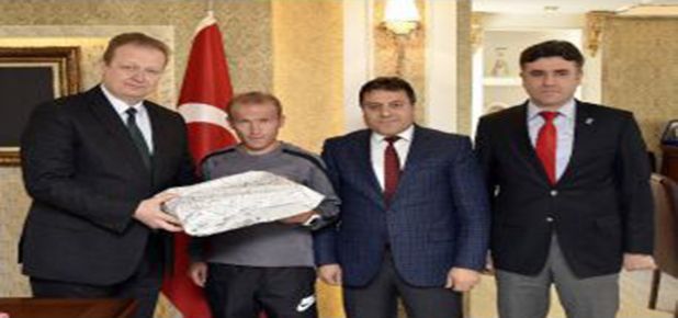 Geçtiğimiz günlerde Dubai'de yapılan Standard Chartered Dubai Maratonu'nda koşan ve olimpiyat barajını geçerek Türkiye'nin tarihinde ilk kez 6 maratoncuyla olimpiyat vizesi almasına vesile olan sporculardan Gümüşhaneli milli atlet Ercan Muslu, Gümüşhane Valisi Yücel Yavuz'u makamında ziyaret etti.
