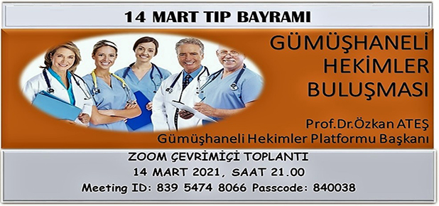 14 Mart Tıp Bayramı dolayısıyla Platform Başkanı Prof. Dr.Özkan Ateş daveti ile düzenlenen çevrimiçi toplantıda günün önemine ilişkin çeşitli konuşmalar yapıldı.