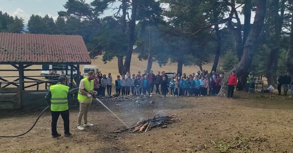 Orman yangınlarına karşı farkındalık oluşturmak amacıyla düzenlenen programda öğrenciler ve öğretmenler, doğayı koruma bilincini pekiştirdi. Etkinliğin ikinci bölümünde ise çevre temizliği çalışması yapılarak piknik alanında çöpler toplandı.