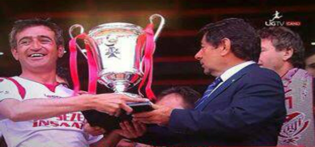 Koca sezonun emeği olan o kupayı Başkan İdris Çimen ve Teknik Direktör Yavuz İncedal, birlikte kaldırdı