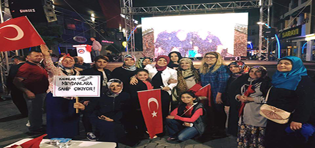 Şehir merkezinde günlerdir süren ‘Demokrasi Nöbetine’ destek veren Köseoğlu, Gümüşhaneli AK Kadınlar tarafından büyük ilgi gördü. Burada bir de konuşma yapan Köseoğlu, Gümüşhaneli kadınlara demokrasi nöbetine verdiği destekten dolayı teşekkür etti.