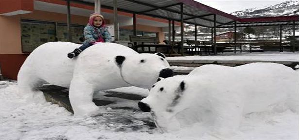 Gümüşhaneli kamyon şoförü Cihan Oral yoğun kar yağışının ardından içindeki sanat aşkını kardan adam yerine ‘Kardan Kutup Ayısı’ yaparak ortaya koydu. Oral’ın ayakkabı çekeceğiyle yaptığı sanat eseri vatandaşın selfie çekilme mekanı oldu