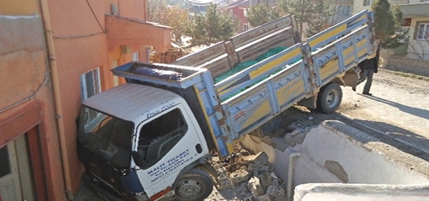 mahallesinde kömür yıktığı sırada freni boşalınca yol kenarındaki alçak duvarı da yıkarak Aydın Kılıç'a ait evin birinci katına çarptı. Kazada Kılıç ailesinin evde olduğu öğrenilirken, kamyonda ve evde maddi hasar oluştu. - Gümüşhane