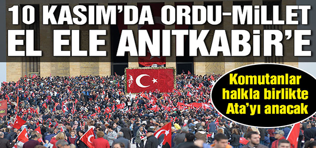 Ebedî Başkomutanımız Gazi Mustafa Kemal ATATÜRK'ün 78'inci Ölüm Yıl Dönümü'nde gönüllerde hiç ölmediğinin; Türk Silahlı Kuvvetleri personelinin, ülkesinin, bayrağının ve milletinin hizmetinde olduğunun bir kez daha vurgulanması amacıyla Genelkurmay Başkanı ve Kuvvet Komutanlarının katılımıyla Anıtkabir Komutanlığında 10 Kasım 2016 saat 15.00'te “Ata'nın Huzurunda Ordu Millet El Ele” temalı bir faaliyet icra edilecektir.