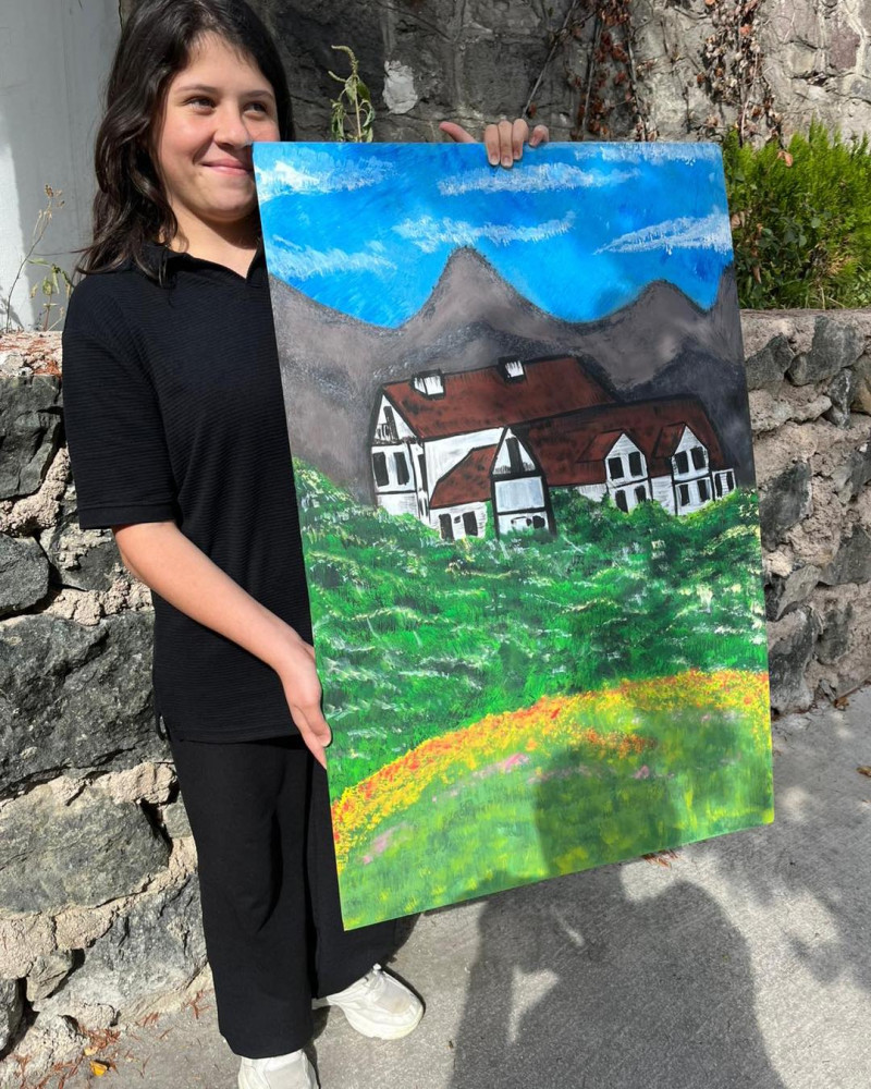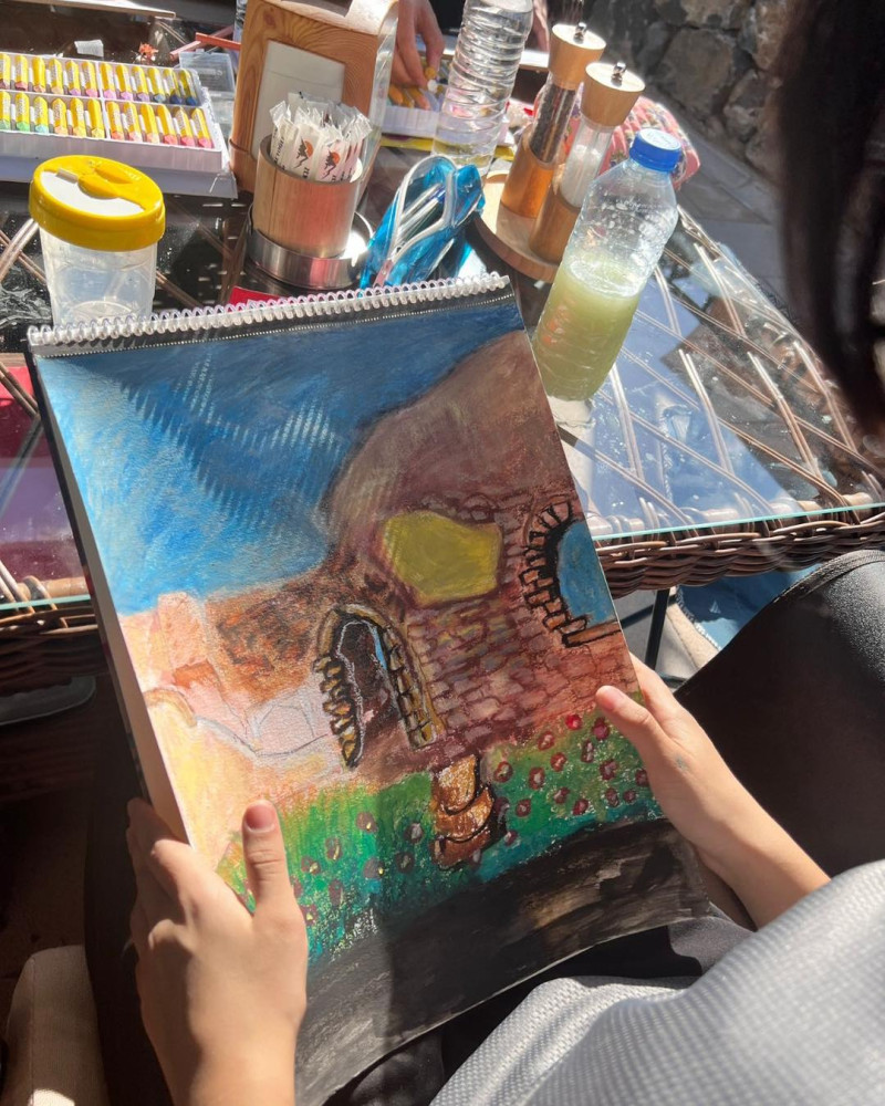Görsel sanatların farklı tekniklerinin uygulandığı etkinlikte öğrenciler, Gümüşhane’nin mimari mirasını ve doğal güzelliklerini tuvallerine yansıttı.