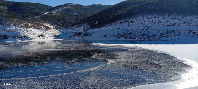 Özellikle Kelkit ilçesine bağlı Söğütlü beldesinde hava sıcaklıklarının ciddi şekilde düşmesiyle birlikte baraj yüzeyi tamamen buzla kaplandı.