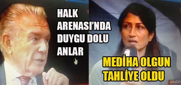Gazeteci Mediha Olgun tahliye oldu. Mediha Olgun, İstanbul Milletvekili Barış Yarkadaş ve Gülay Yedekçi ile birlikte Uğur Dündar’ın sunduğu Halk Arenası programına konuk oldu.
